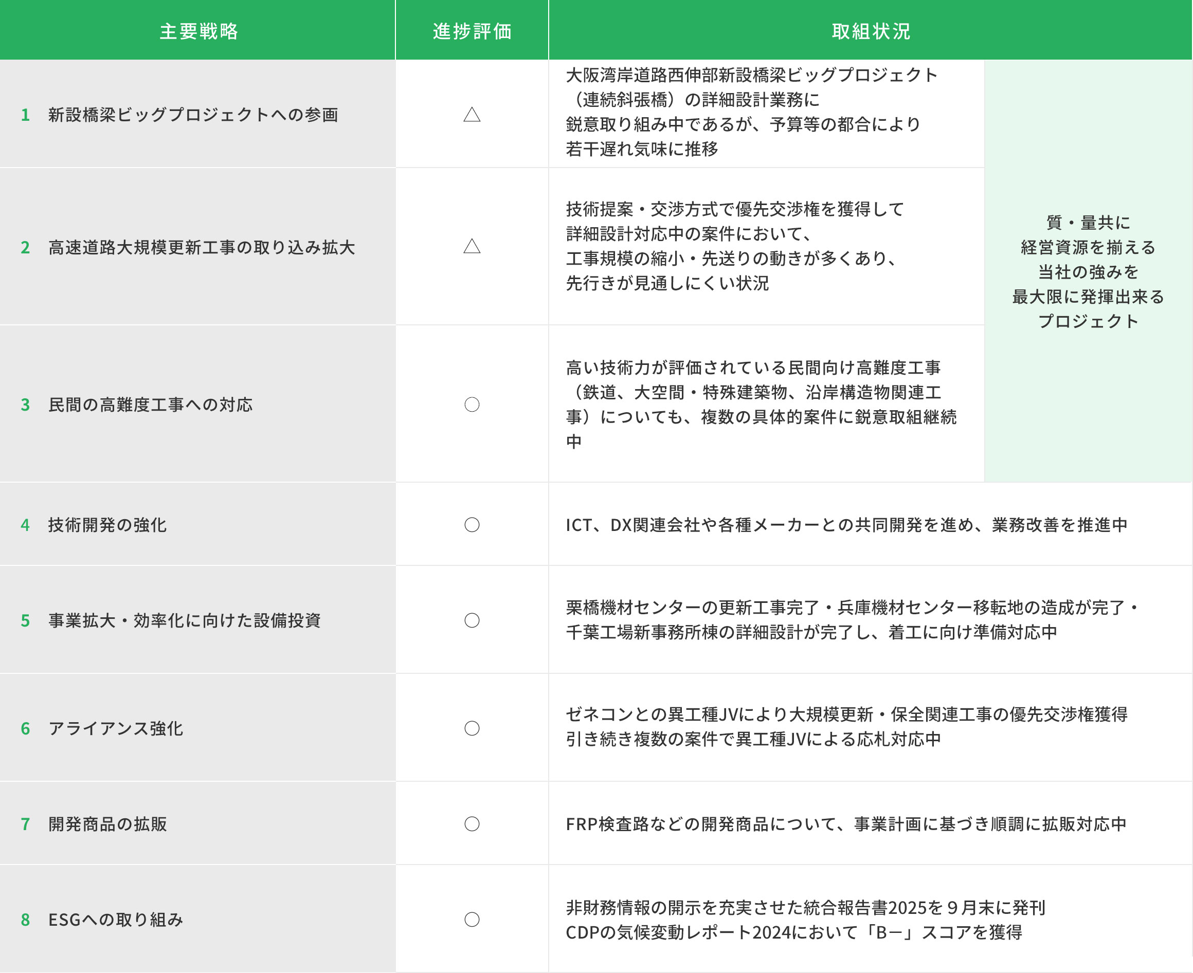 また、高速道路関連工事において、案件の大型化や施工タイミングの不透明さなどの影響により、工場操業度の平準化が難しい局面が続いています。