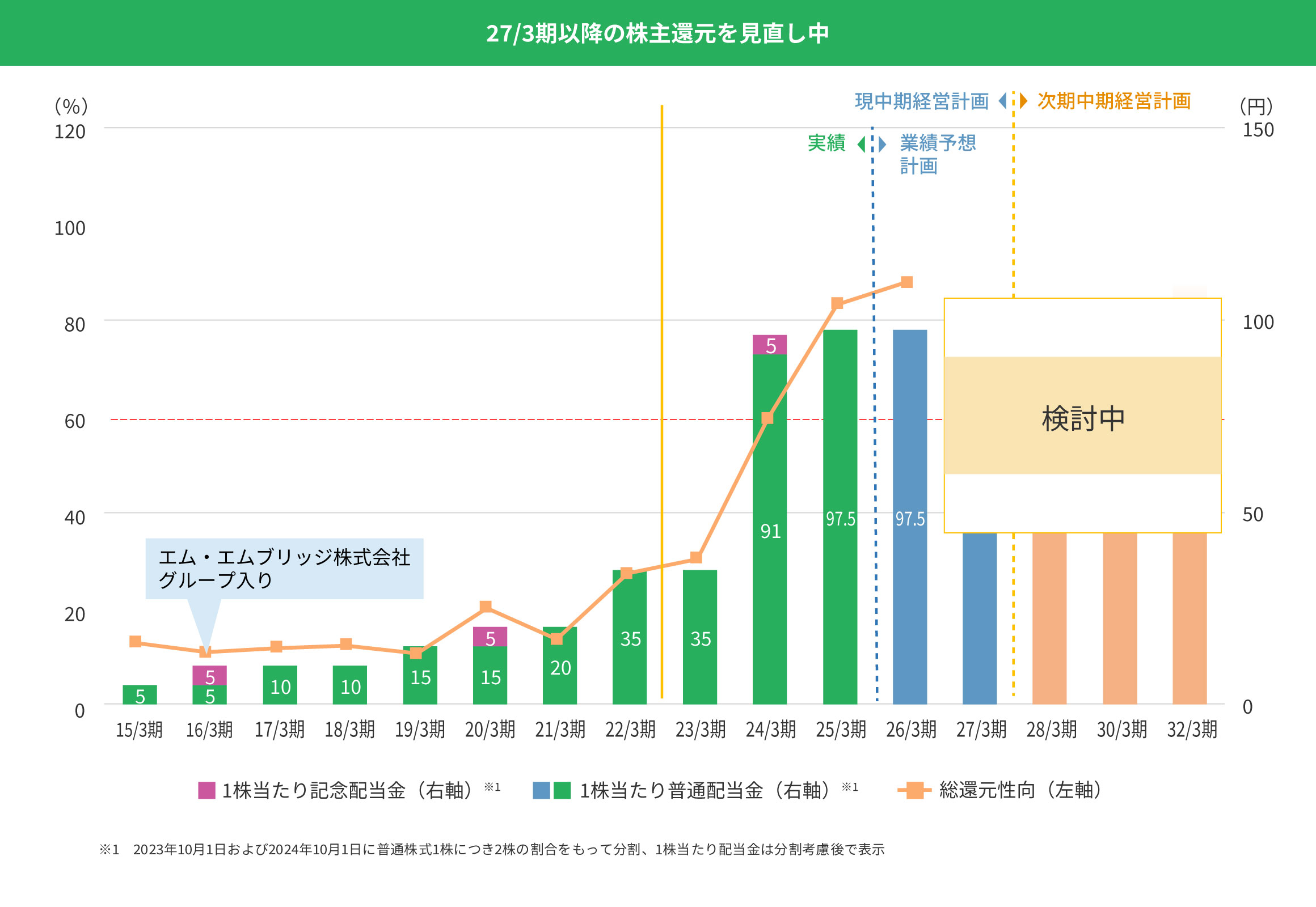 一定の資本拡充および成長投資も確保の上で、株主還元の維持・拡大を図る