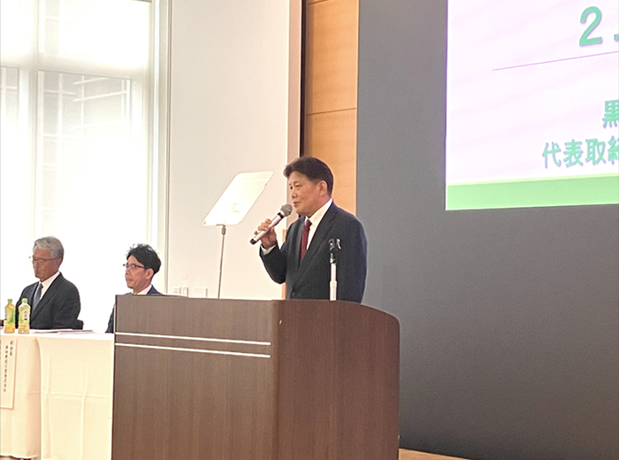 冒頭、黒﨑 伸介 会長(黒崎建設株式会社 代表取締役社長)より、「宮栄会は、安全・品質の向上に加え、環境配慮や持続可能な社会の実現に向けた活動を協力会社と共有し、共に成長を目指す組織である」との挨拶があり、今後のビジョンが力強く語られました。