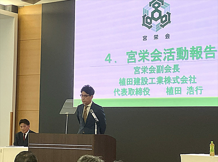 その後、植田 浩行 副会長(植田建設工業株式会社 代表取締役)より、事前審議事項である「2024年度会計収支報告」「2025年度会計収支予算」「役員選任の件」について、全会一致で承認されたと報告されました。また、第2回〜第4回幹事会の活動報告も行われました。