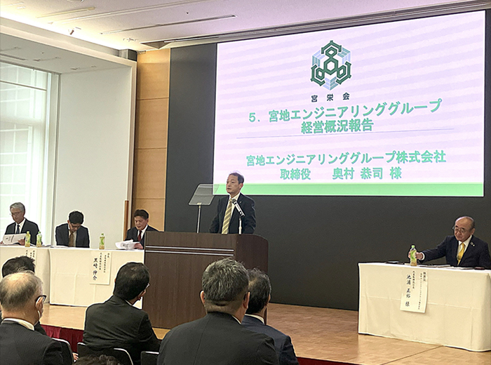 冒頭、2025年4月1日付で宮地エンジニアリンググループ株式会社代表取締役社長に就任された池浦 正裕社長より、「引き続き宮栄会の皆様と連携し、グループ全体の成長と発展に取り組んでまいりたい」とのご挨拶をいただきました。