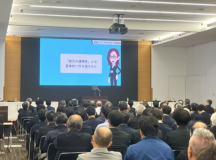 宮地エンジニアリンググループ(株)にて実施する「取引の透明性確保」に関する教育動画の内容を確認し、本動画については、宮栄会総会で視聴いただくことを確認しました。