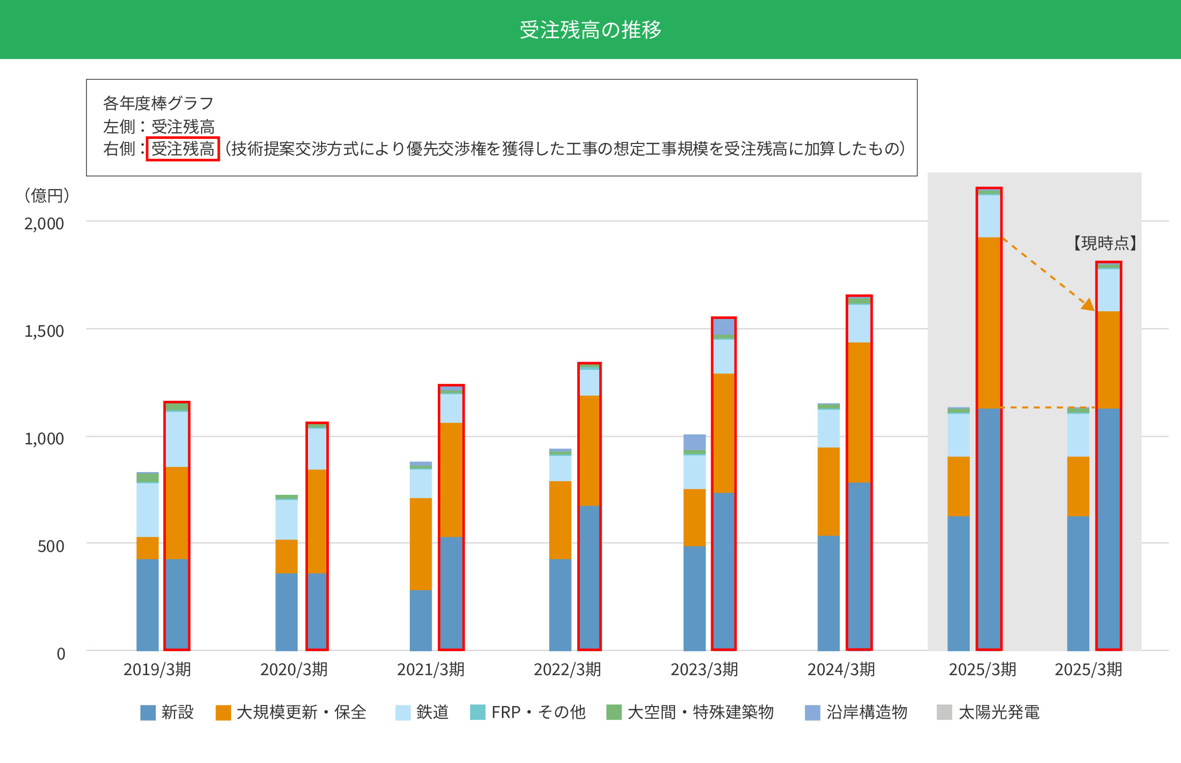 当社グループとしては、技術提案・交渉方式などを通じて複数案件の優先交渉権を獲得しているものの、非常に技術的難易度の高い設計・施工対応力が求められているため、詳細設計や第三者協議などが難航して、施工時期や発注時期が年単位で遅れることも多く、全体的な売上時期などを見通すことが難しい状況となっています。